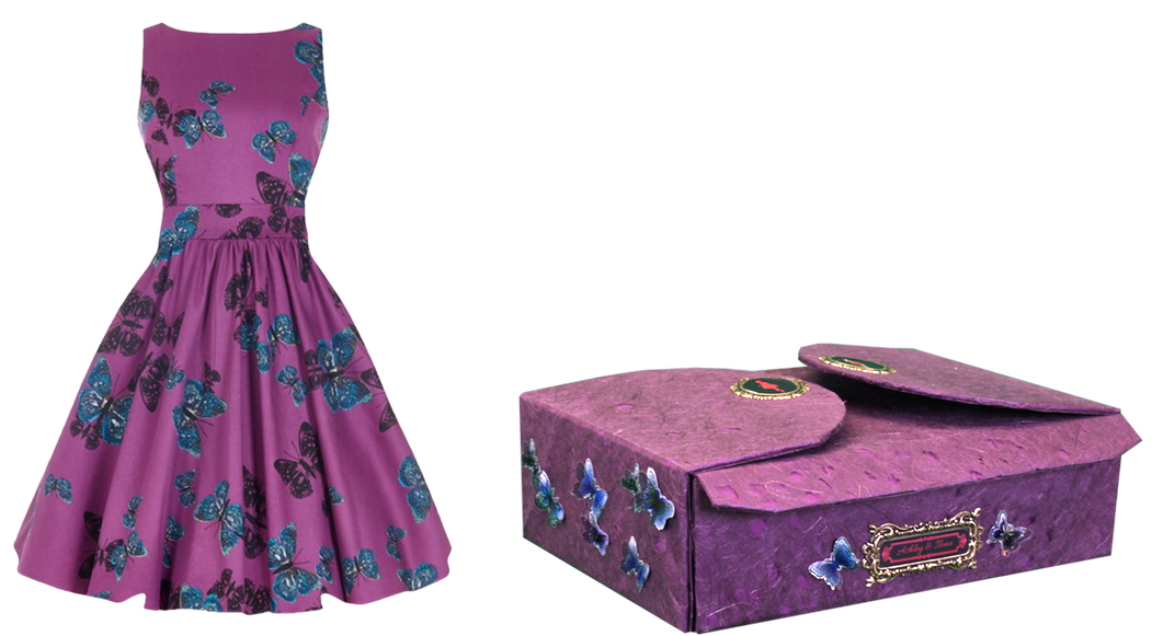 Every dress is special and we take the time to create a hand-crafted matching box for each dress.Since each box is made by hand, no two are ever the same.